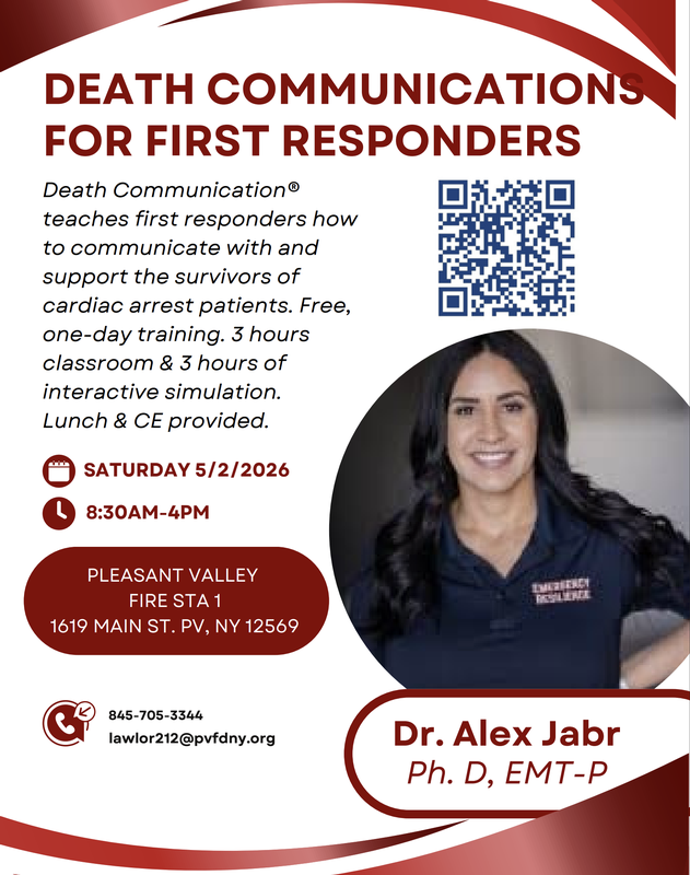 We are hosting Death Communication for First Responders, a powerful, evidence-based program focused on one of the most difficult aspects of our job—communicating with families after a death and supporting survivors during those first critical moments.